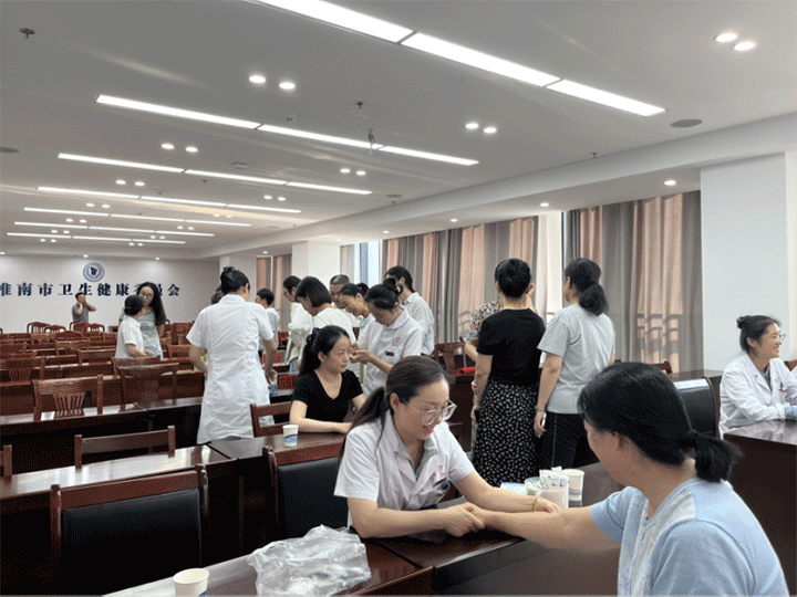 为深入传承中医药文化精髓,切实将优质中医健康服务延伸至基层一线,9月5日下午3时,上海中医药大学附属曙光医院淮南医院组建专业医护团队,赴淮南市卫生健康委员会开展中医适宜技术专项义诊活动,以精湛医术与暖心服务,为机关职工的身心健康筑起坚实屏障。