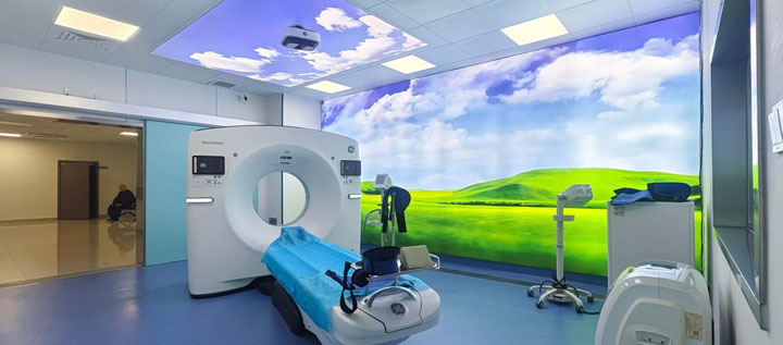 上海曙光医院淮南医院影像科经过沉淀和发展,用心规划场地,创造了一个整洁明亮,科学优良的就诊环境,机房采用类穹顶及扩展空间、蓝天白云,远山绿植的设计,让患者仿佛呼吸到新鲜的空气,从传统检查的紧张心情释放,到工作人员亲切引导,检查过程安心舒适。