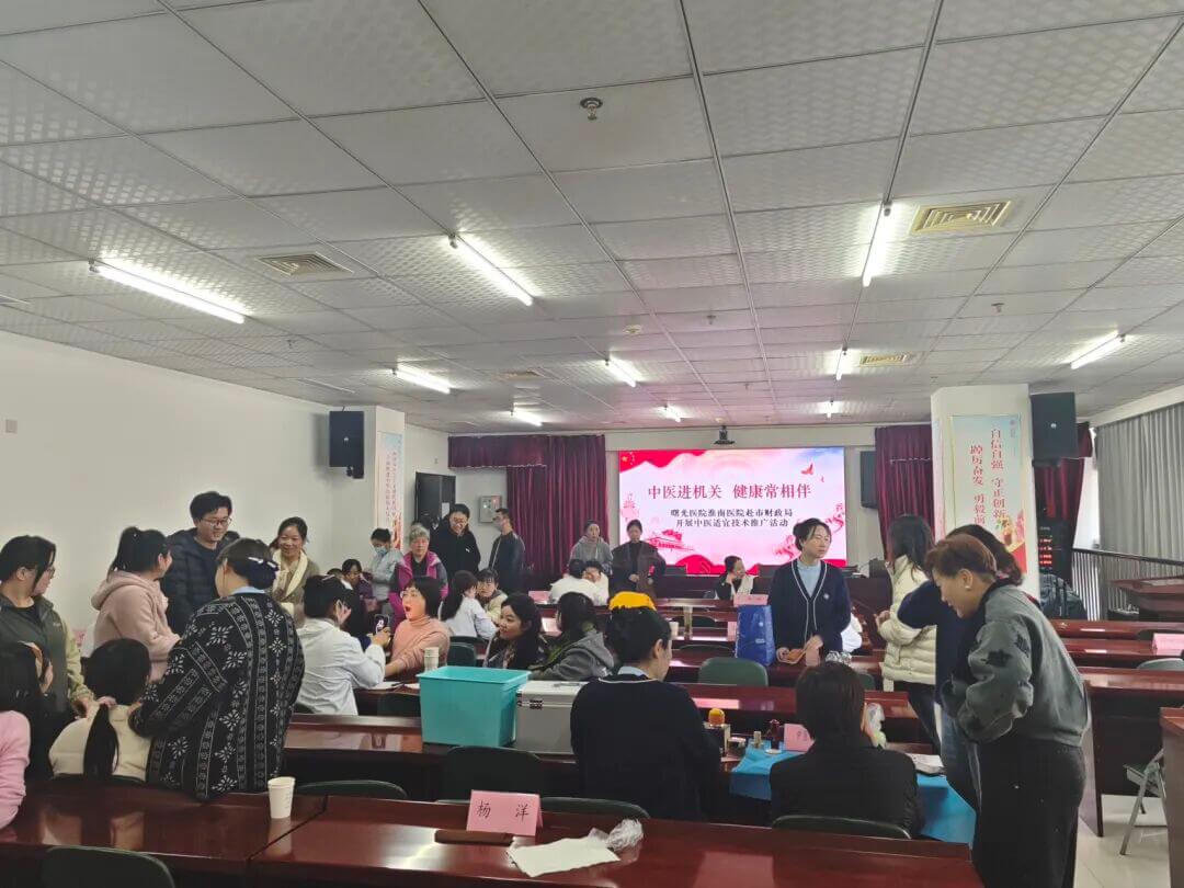 为传承弘扬中医文化,深化优质中医服务延伸,切实将中医特色健康服务惠及企事业单位职工,12月11日下午,曙光医院淮南医院医护团队精准对接健康需求,赴市财政局开展中医适宜技术推广活动,以专业讲座、多学科义诊、特色技术体验多维联动,传递中医养生智慧,守护职工身心健康。