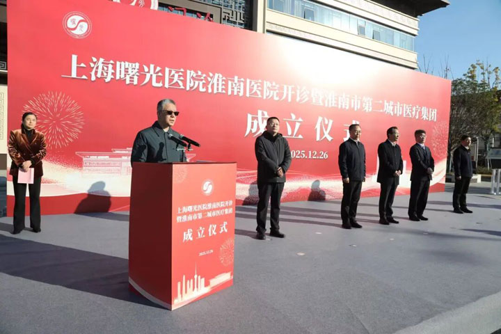 12月26日上午,上海曙光医院淮南医院开诊暨淮南市第二城市医疗集团成立仪式在上海曙光医院淮南医院山南新院区举行。淮南市委副书记、市长张志强出席并宣布上海曙光医院淮南医院正式开诊、淮南市第二城市医疗集团正式成立。上海中医药大学党委常委、副校长王拥军出席。淮南市委副书记时志远致辞。淮南市人民政府副市长陆晞主持仪式。上海中医药大学附属曙光医院党委副书记、院长林勋,党委委员、副院长元唯安,淮南市人民政府秘书长胡德春,安徽省中医药管理局综合处副处长杜鹏程,上海曙光医院淮南医院执行院长胡峻,以及淮南相关市直部门、县区负责人出席仪式。
